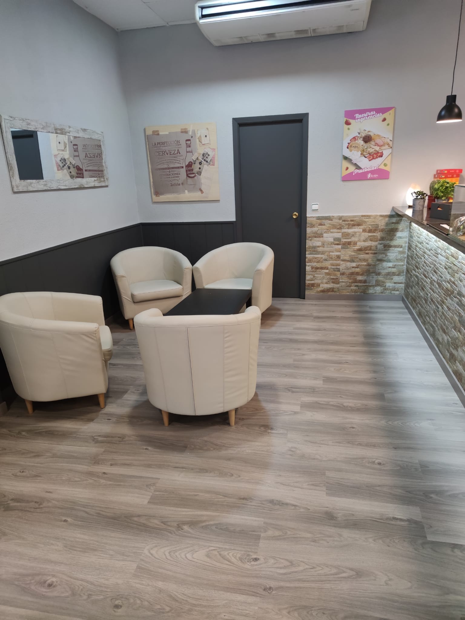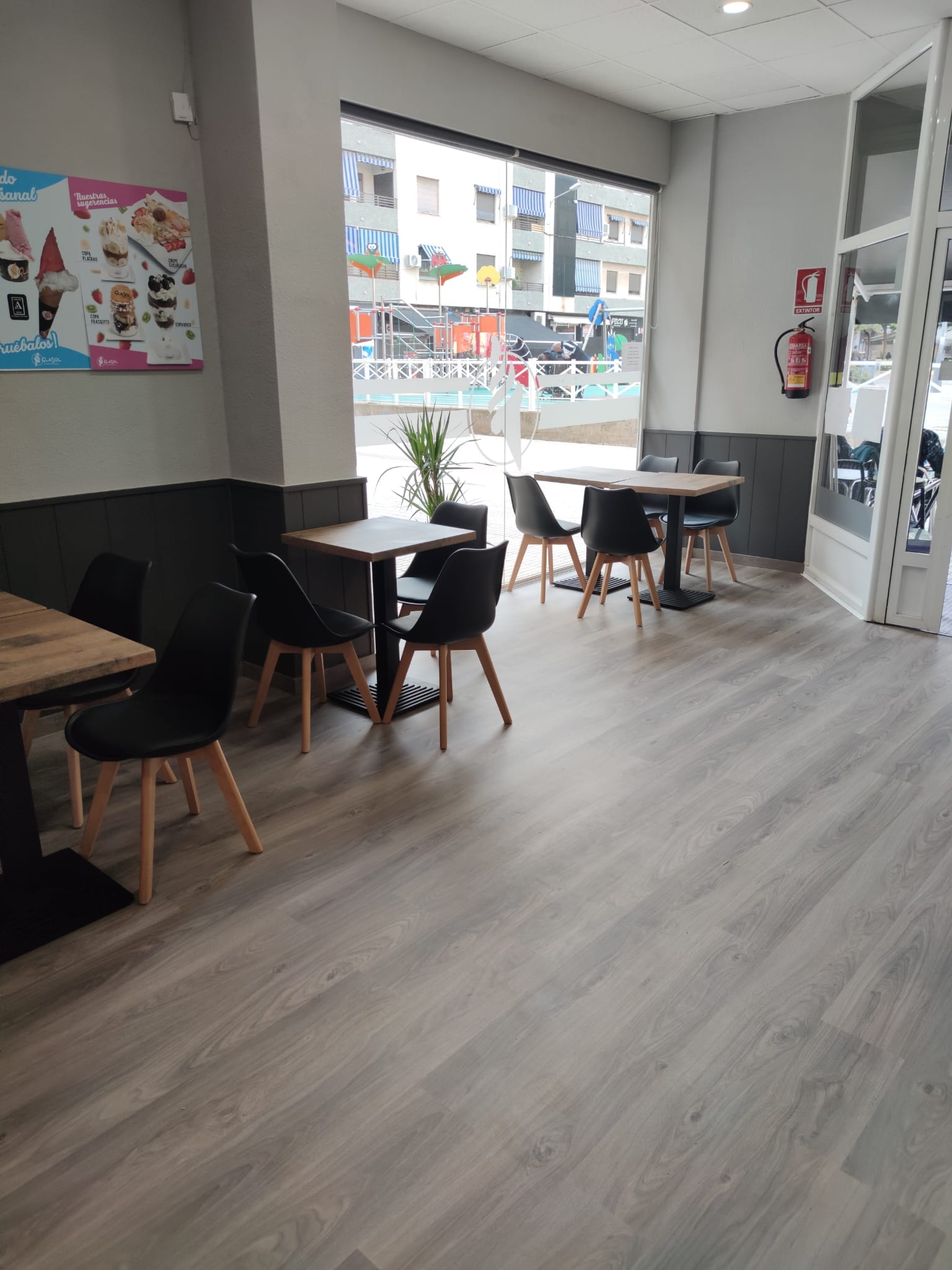 En este caso, instalamos un suelo laminado con resistencia AC5/33 de la marca Disfloor. El color elegido fue el roble gris oscuro. Además, lo rematamos con un rodapié de PVC con lacado blanco. Sin duda, se trata de un material muy indicado para locales comerciales. En este tipo de negocios, el volumen de personas que pisan el suelo es muy alto y este material cuenta con una gran resistencia al rayado. ¡La opción ideal!
